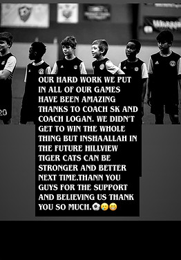 A new group of boys in fourth grade (8 Hilltop Tigers and 5 Grandview Bobcats) played in a multicultural Thanksgiving Weekend indoor tournament! We finished 2nd!